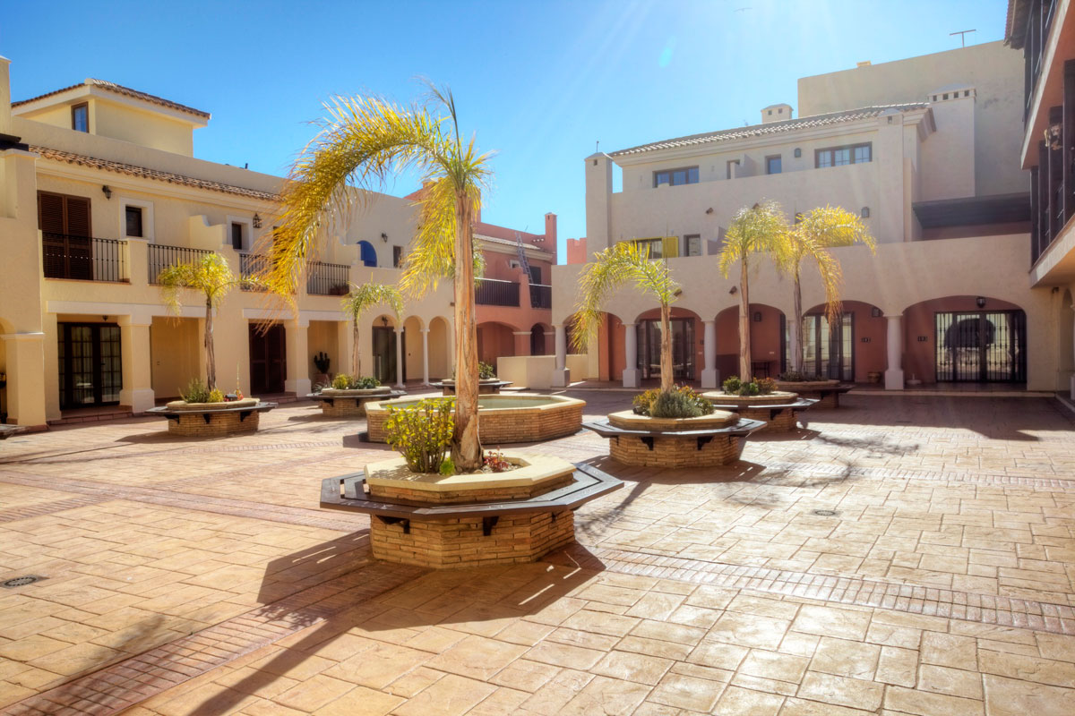 Construida dentro de un hermoso patio de estilo español, brinda acceso directo a la piscina comunitaria privada, jardines y plazas interiores con fuentes y áreas de relax.