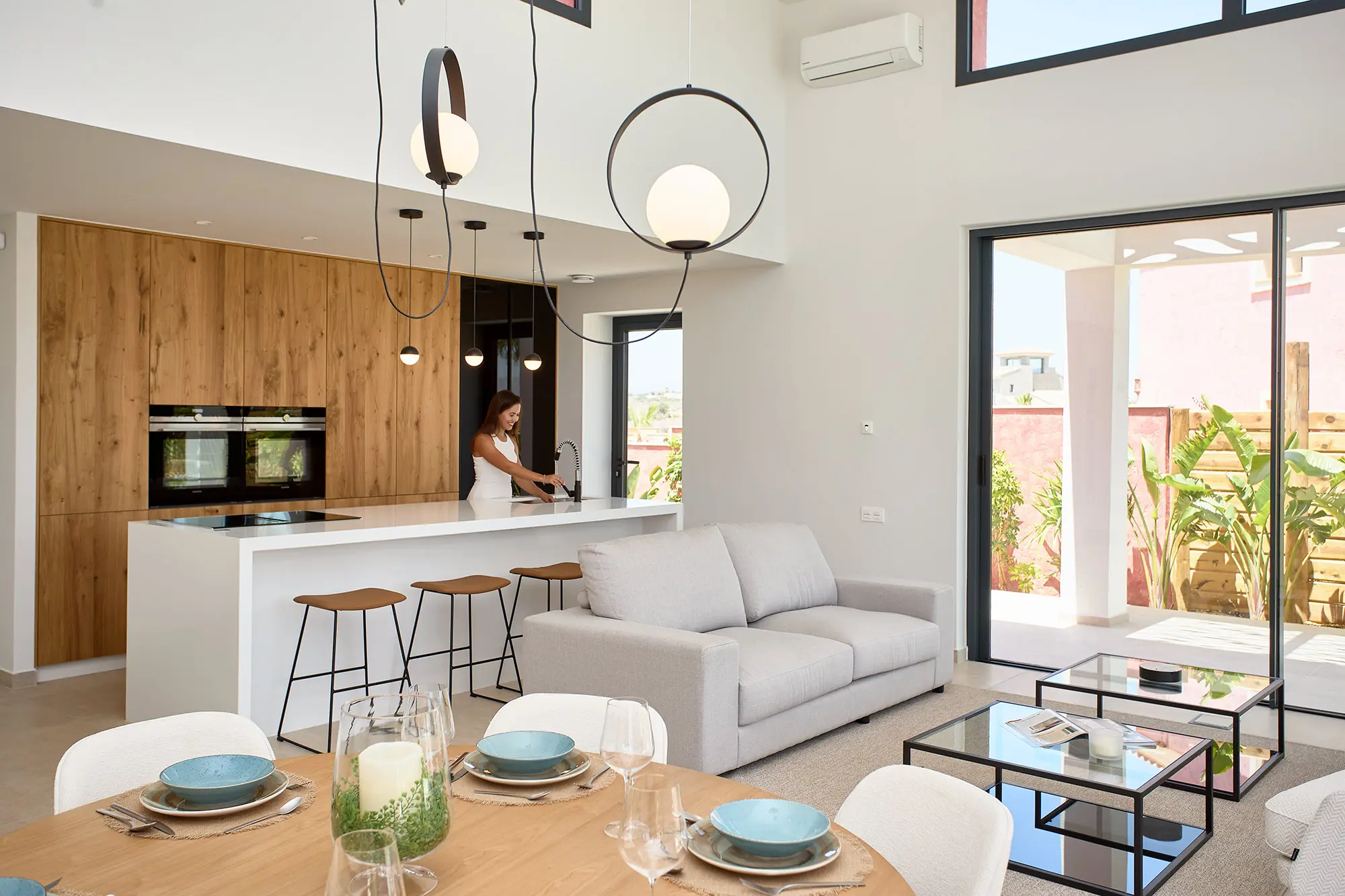 Las cocinas de planta abierta con encimeras de ‘Silestone’ y electrodomésticos integrados crean los espacios perfectos para el entretenimiento, al tiempo que también se adaptan a una tranquila velada después de un largo almuerzo junto a la playa.